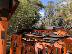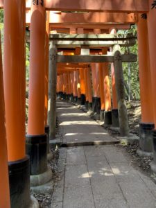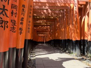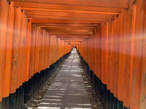 Le sanctuaire aux 10.000 torii dans la montagne de Kyoto. Fushimi Inari Taisha est le plus grand sanctuaire shinto du Japon situé au sud de Kyoto. Erigé en 711, il est dédié à la déesse du riz Inari et plus largement à la richesse. La beauté de ce complexe se dévoile au gré d’une randonnée pédestre le long d’une vallée, balisée par des milliers de portiques vermillon appelés torii.