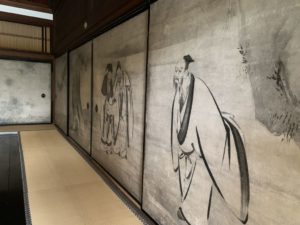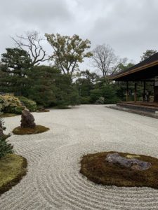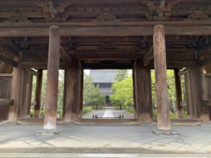 Kennin-ji est le temple principal de la branche Rinzai du bouddhisme Zen, situé au bout de la rue Hanamikoji, à l’est de Kyoto. Fondé en 1202 par l’influent moine Eisai (ou Yosai), il fait aujourd’hui parti des Cinq Grands Temples de la ville. Il est réputé pour ses magnifiques peintures intérieures décoratives et ses jardins bien entretenus.