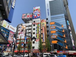 Akihabara est le quartier électronique de Tokyo. C’est le lieu privilégié des amateurs de mangas, jeux vidéo et de culture populaire japonaise, très apprécié des jeunes touristes étrangers « geek » ou « otaku« . Il est également connu sous le nom de « ville électrique » en raison des devantures lumineuses des commerces qui scintillent à la nuit tombée.