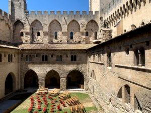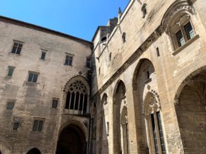 Le Palais des Papes, qui se trouve dans le centre-ville, est entouré de remparts médiévaux en pierre et témoigne de cette histoire.
